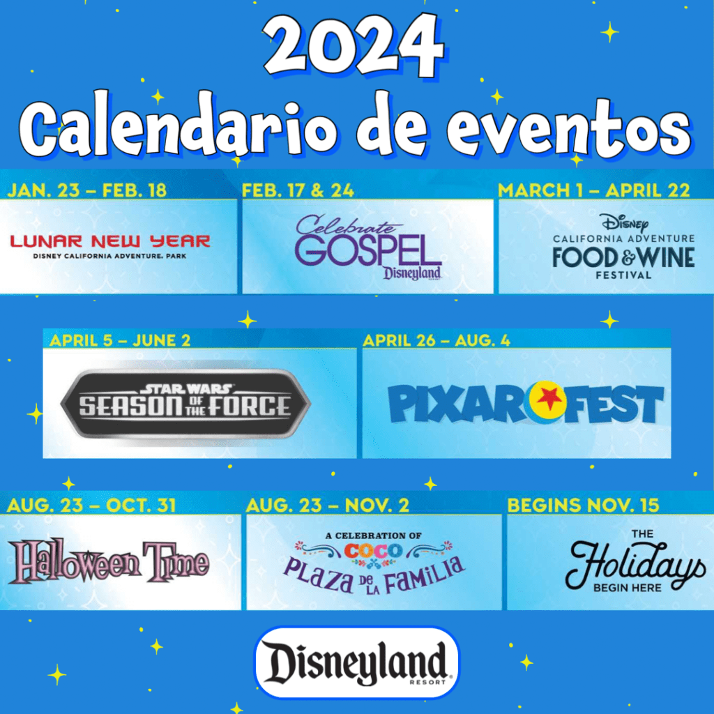 Calendario de eventos en Disneyland California para 2024